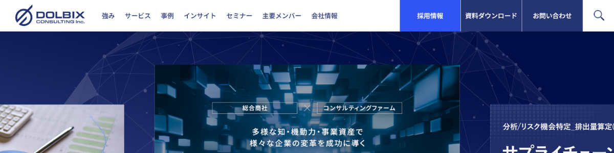 2020年に丸紅グループの戦略コンサルティング会社として設立されたドルビックスは、総合商社の強みを活かした新しいタイプのコンサルティングファームです。若い組織ながら、丸紅の持つグローバルネットワークと多様な産業知見を基盤に、独自のポジションを確立しています。