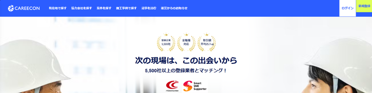 「CAREECON(キャリコン)」は、BRANU株式会社が運営する建設業界特化型のマッチングプラットフォームです。2014年のサービス開始以来、50万社を超える建設事業者が登録し、月間10万人以上がサイトを閲覧する国内最大級の建設業マッチングサイトとして成長しています。2018年7月には日本経済新聞朝刊でも紹介されました。