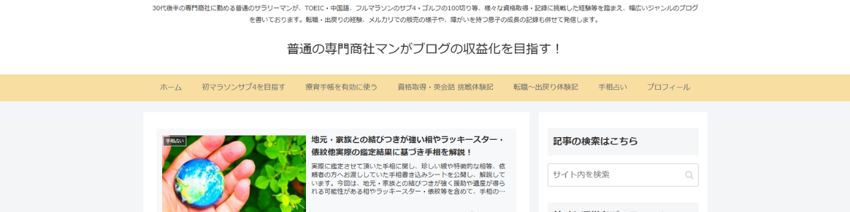 「普通の専門商社マンがブログの収益化を目指す!」は、秋田県出身、神奈川県在住で都内の専門商社に勤務する38歳のサラリーマンが運営する個人ブログです。趣味・特技を楽しみながらブログの収益化にチャレンジすることをコンセプトに、数々の資格取得や記録挑戦、海外駐在経験などを活かしたコンテンツを発信しています。