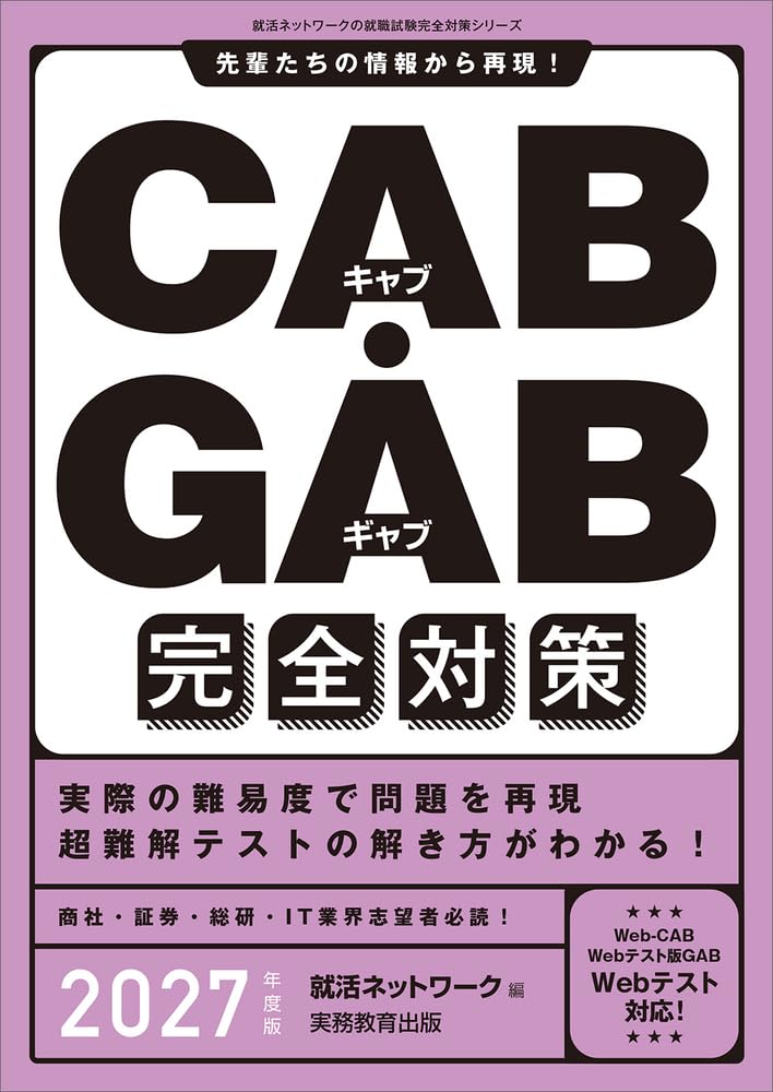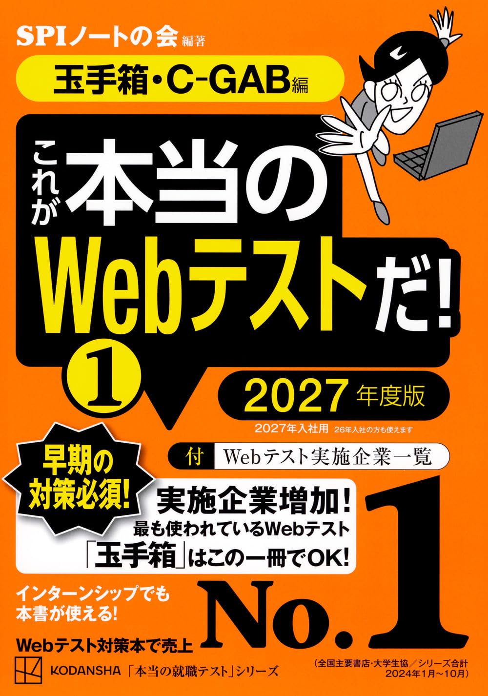 日本SHL社のWebテスト「玉手箱」とその自宅受検版「C-GAB」の対策に特化した定番の就活本です。計数理解(四則逆算、図表読取、表推測)、言語理解(論理的読解、趣旨判定)、英語理解の全問題形式を網羅し、実際の出題内容や制限時間、画面イメージまで忠実に再現しています。